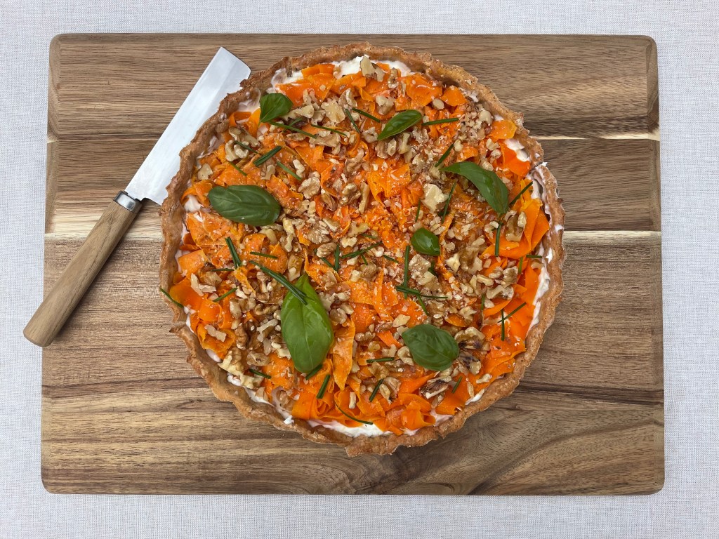 Tarte tagliatelles de carottes, fromage frais et noix